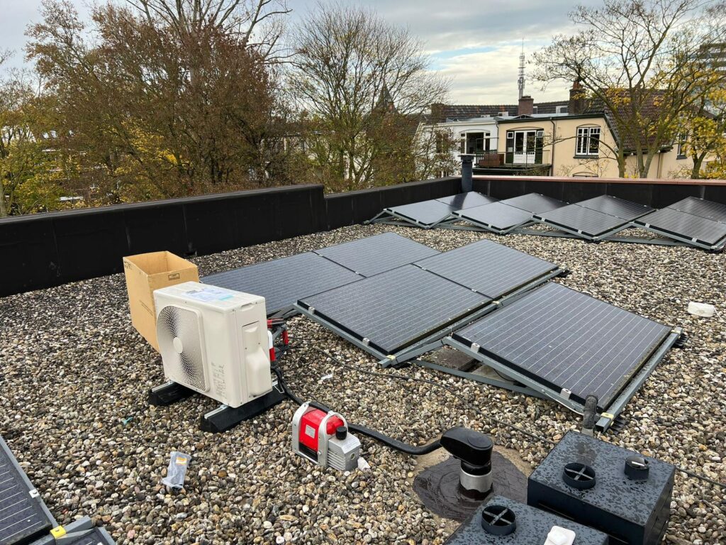We plaatsten een Remeha Elga Ace 6 kW hybride warmtepomp, die efficiënt samenwerkt met de bestaande cv-ketel voor een optimaal energiezuinige verwarming. Daarnaast zijn er 9 nieuwe zonnepanelen geplaatst.